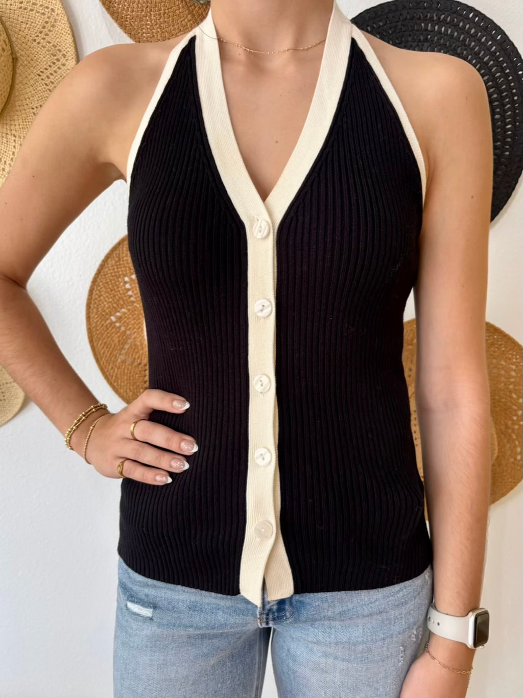 Contrast Trim Halter Top