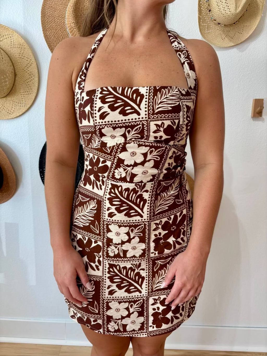 Talli Halter Square Neck Mini Dress - Chocolate