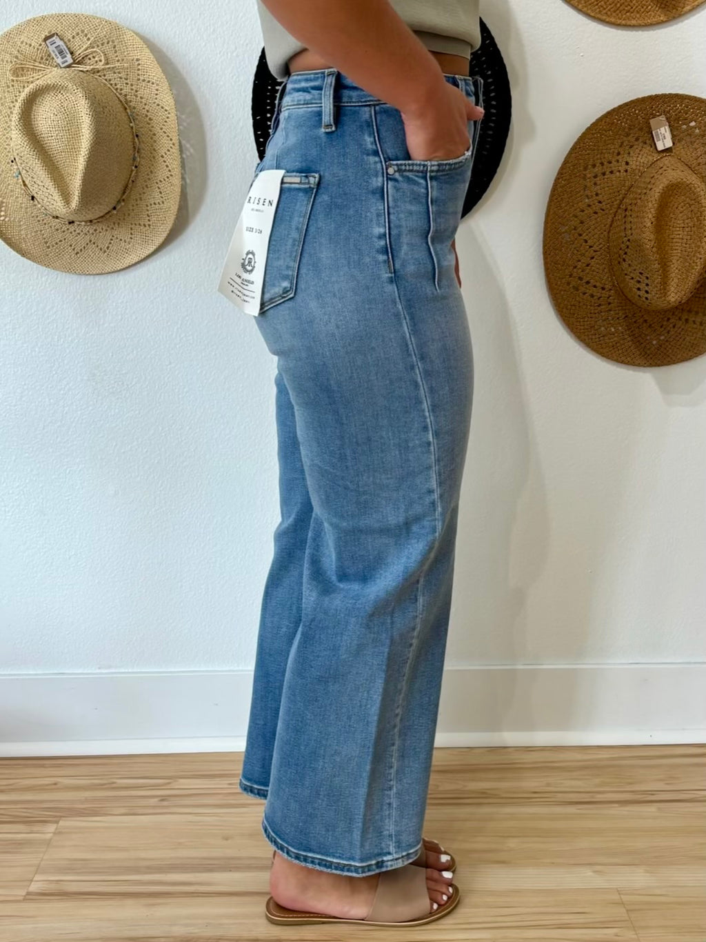 Risen High Rise “Tummy Control” Cropped Wide Leg Jeans - Medium