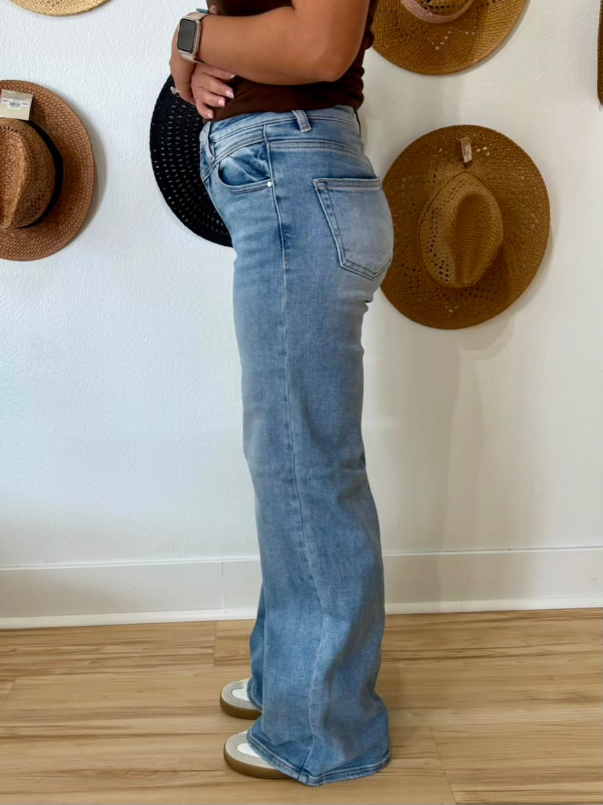 Risen High Rise Front Yoke Detail Wide Leg Jeans - Medium