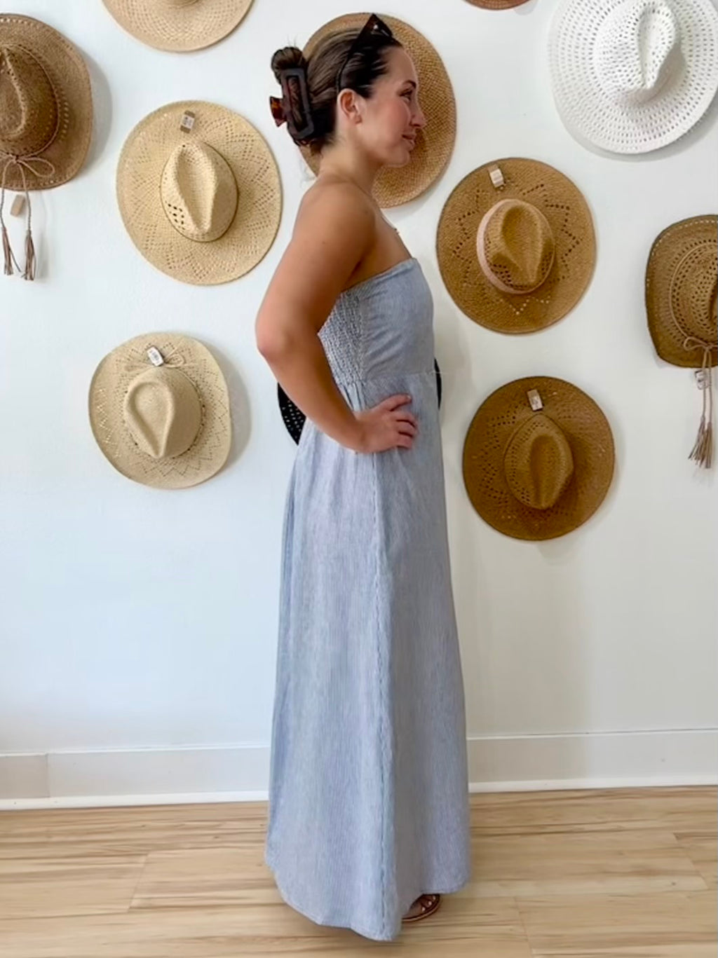 Walk This Way Smocked Jumpsuit - Blue Shadow