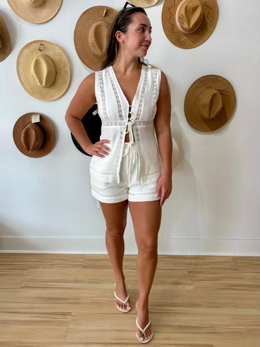 Final Touch V-Neck Cropped Top - Ivory