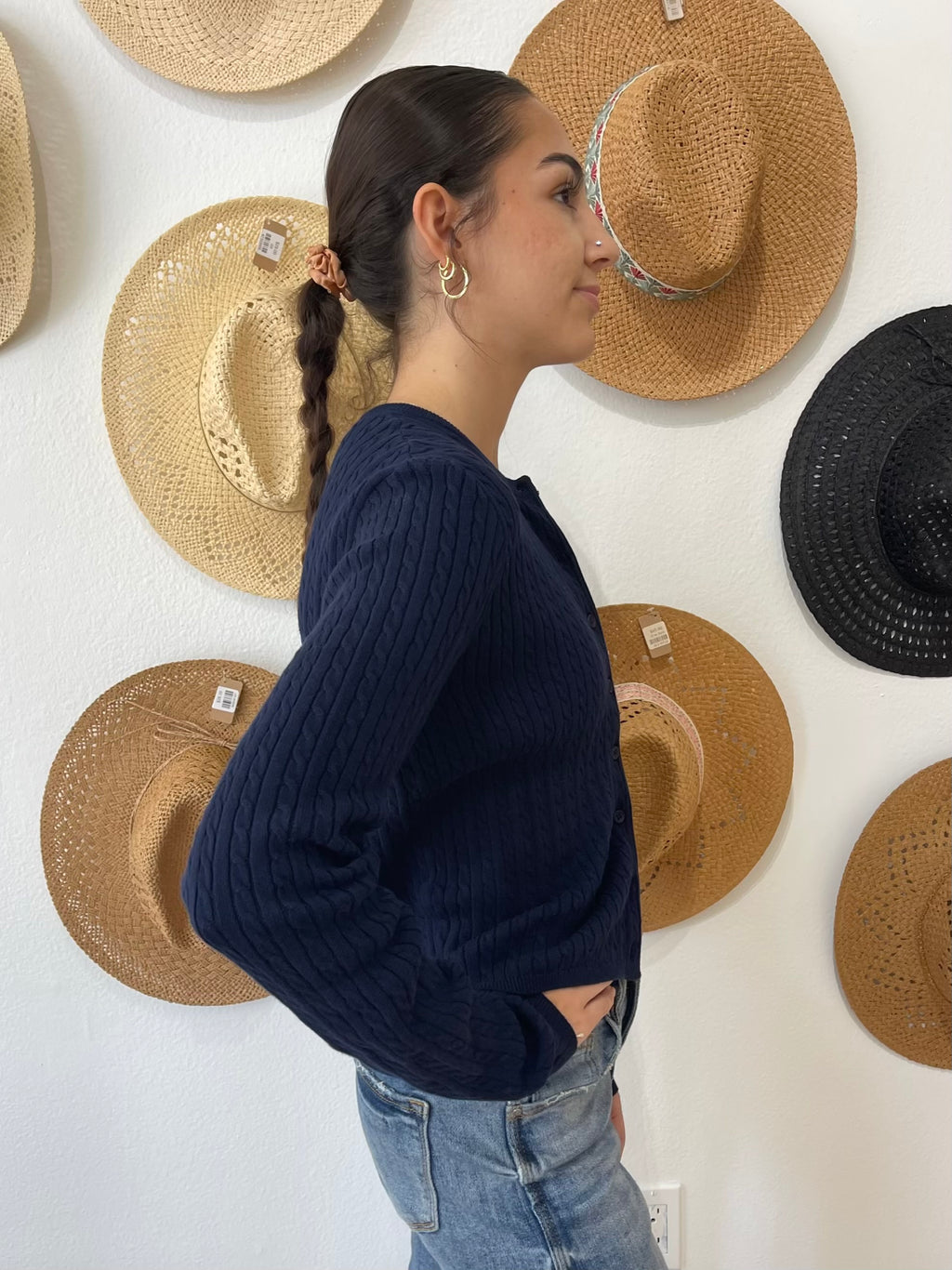Final Touch Long Sleeved Square Neck Crop Top - Modern Navy