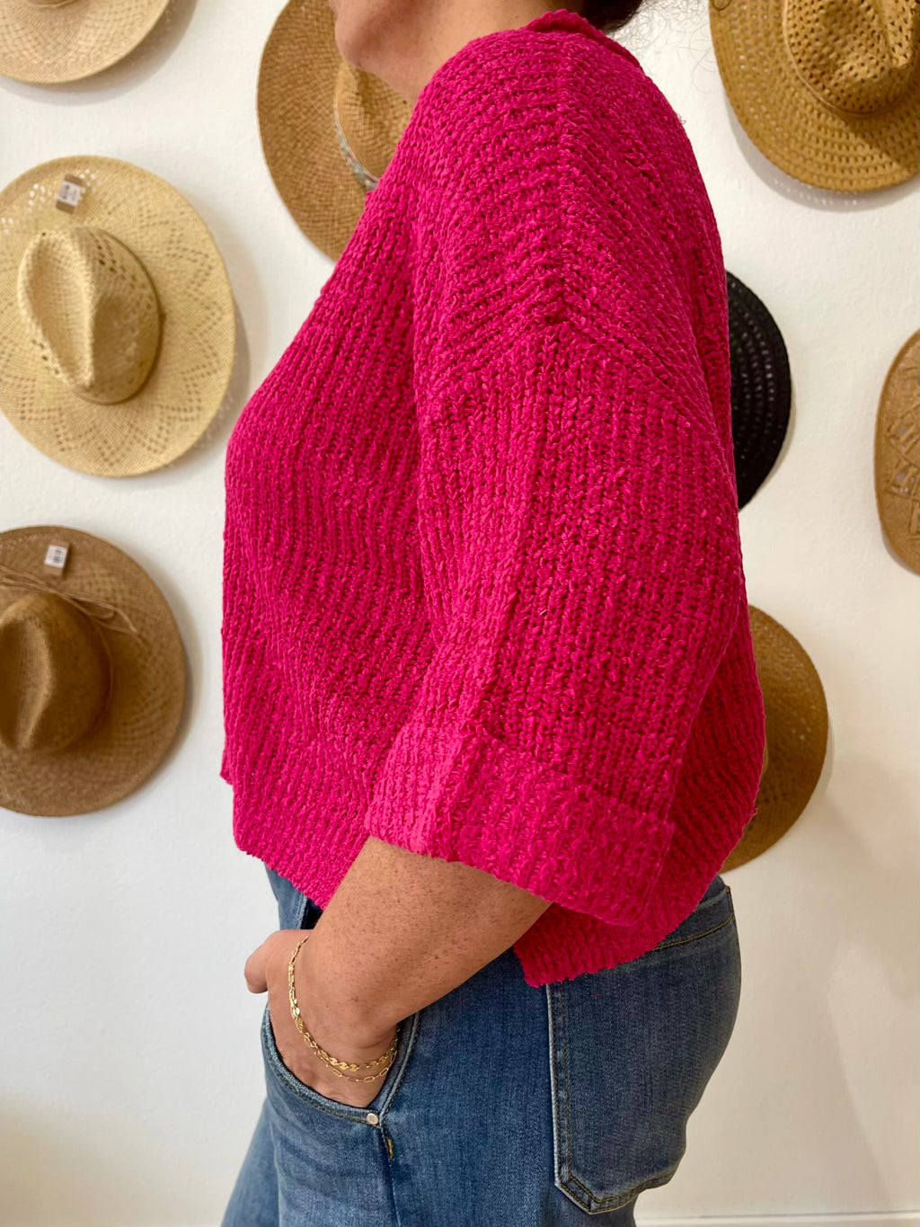 Mari Slouchy Cropped Sweater - Fuchsia