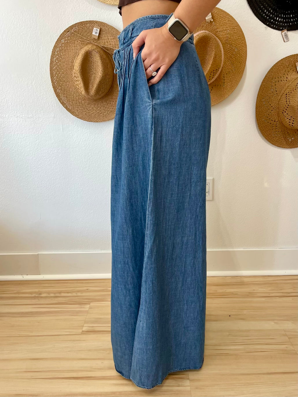 Risen High Rise Slant Pocket Wide Leg Jeans - Dark