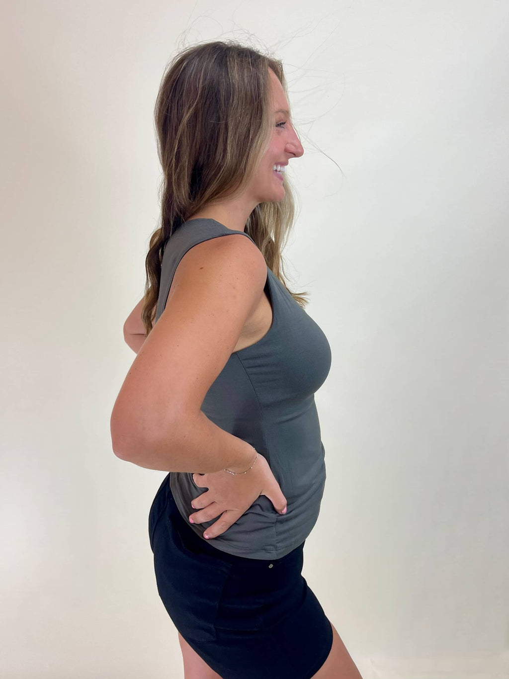 Final Touch Double Layer V-Neck Top - Gun Metal