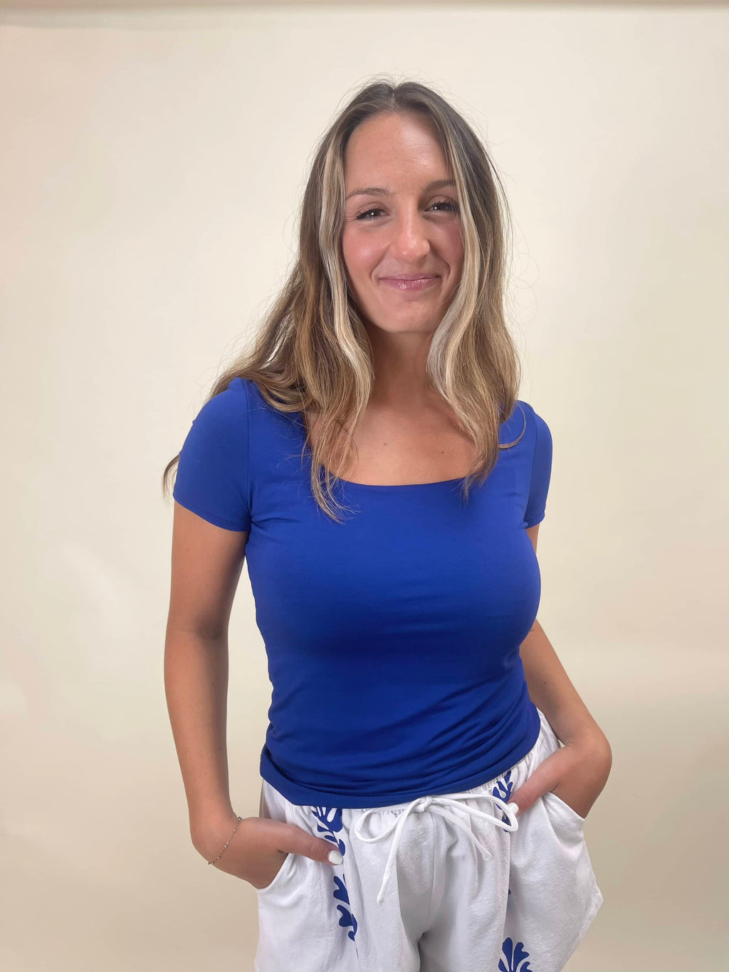 Final Touch Long Sleeved Square Neck Crop Top - Modern Navy