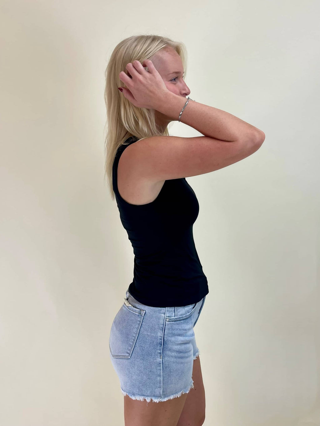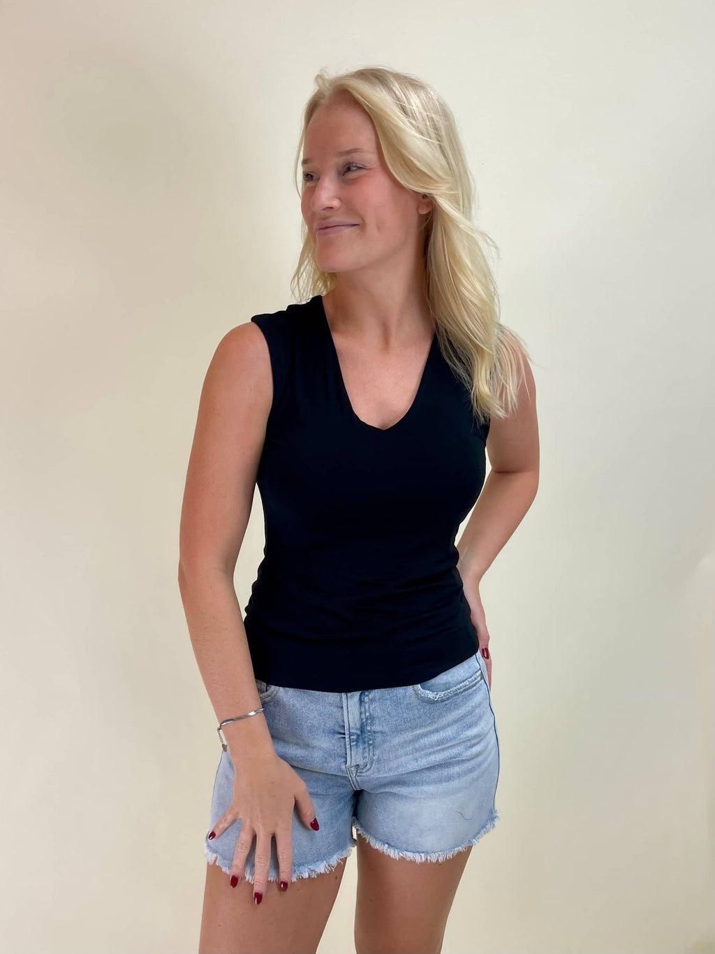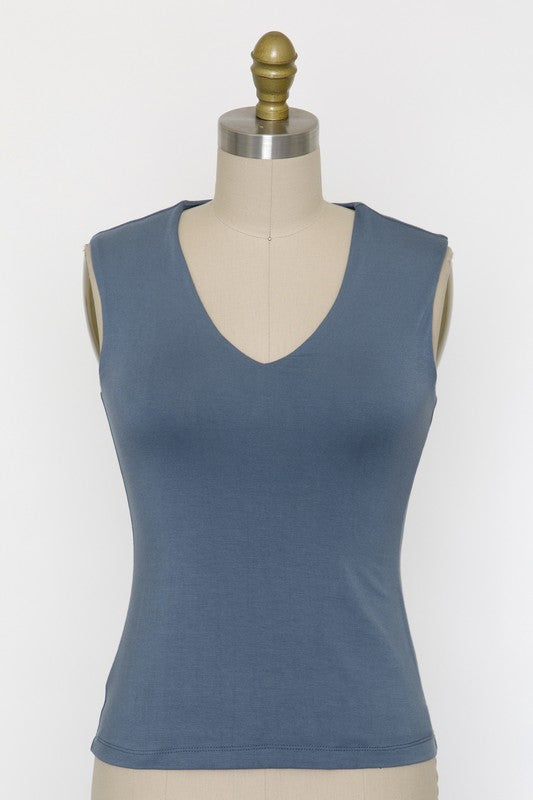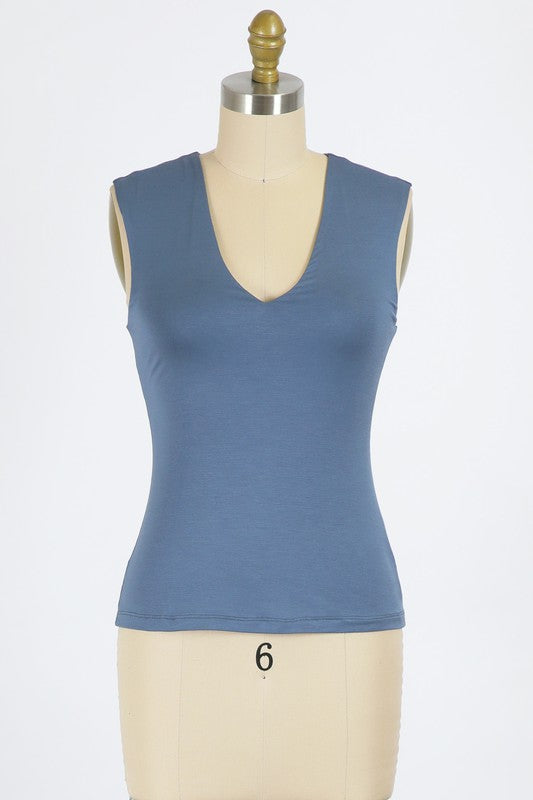Final Touch Double Layer V-Neck Top - Dk Denim