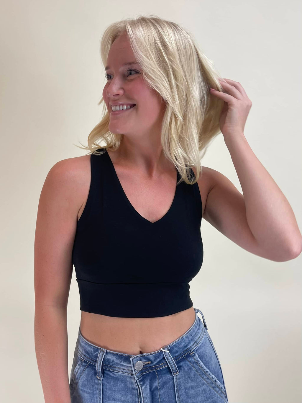Final Touch Double Layer V-Neck Top - Modern Navy