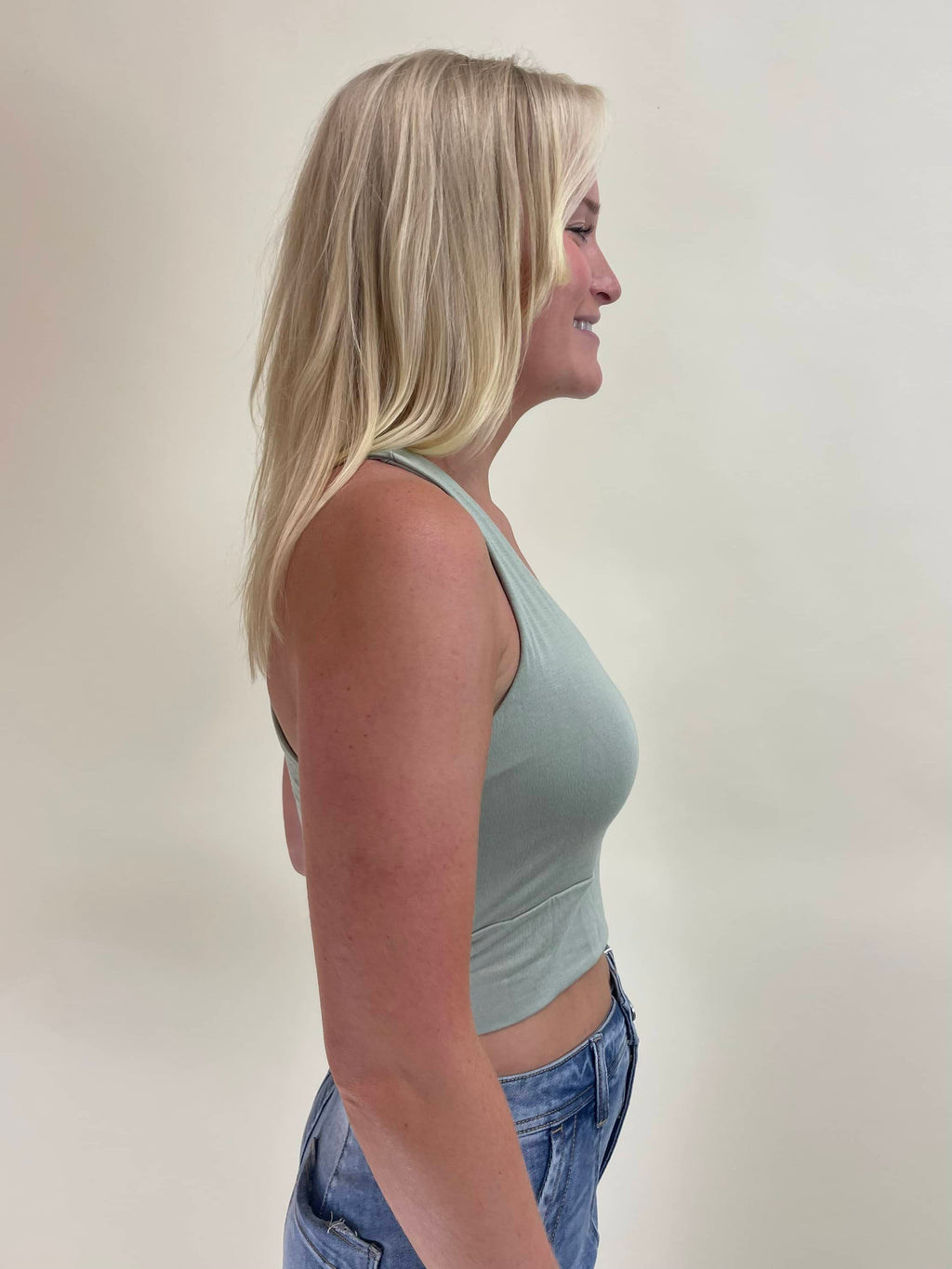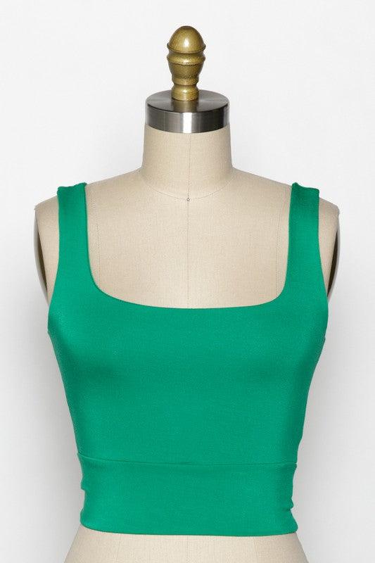 Final Touch Long Sleeved Square Neck Crop Top - Dk Emerald