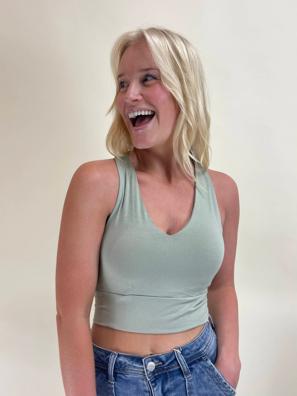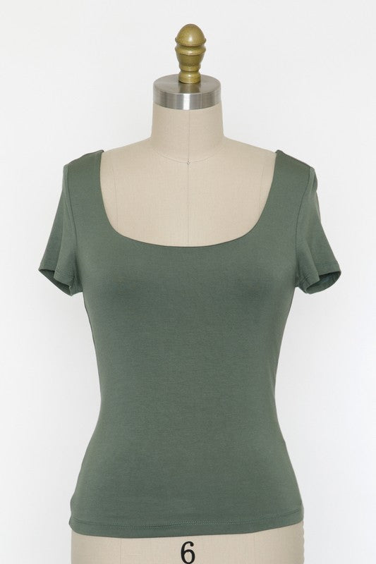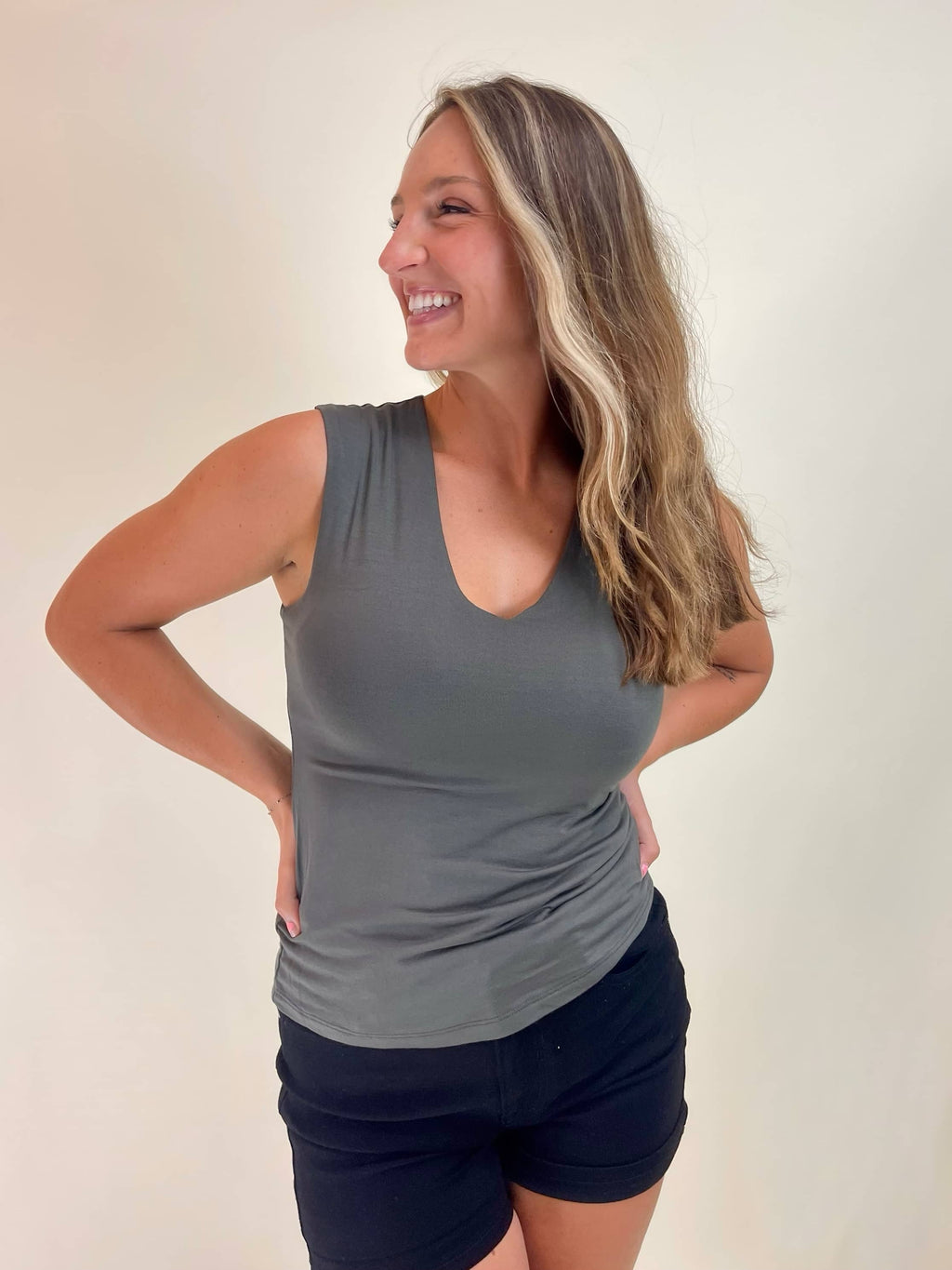 Final Touch Double Layer V-Neck Top - New Dk Sage