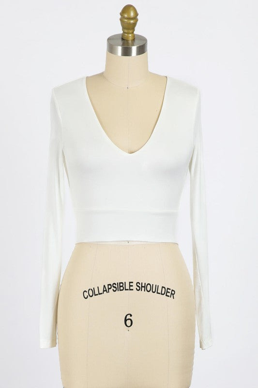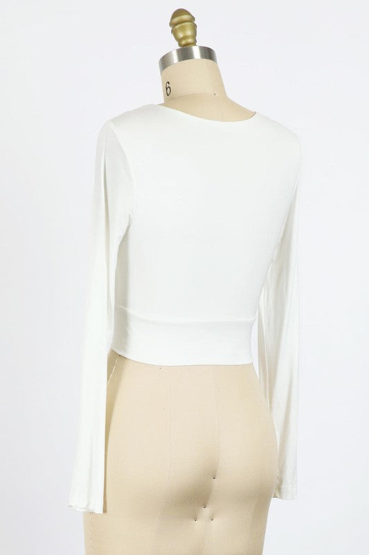 Final Touch Long Sleeved Square Neck Crop Top - Ivory