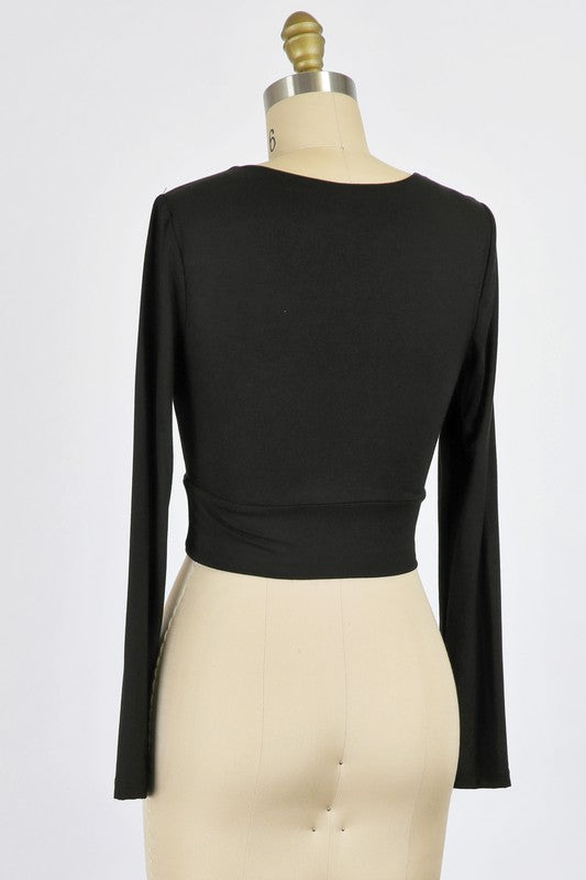 Final Touch Long Sleeved Square Neck Crop Top - Black