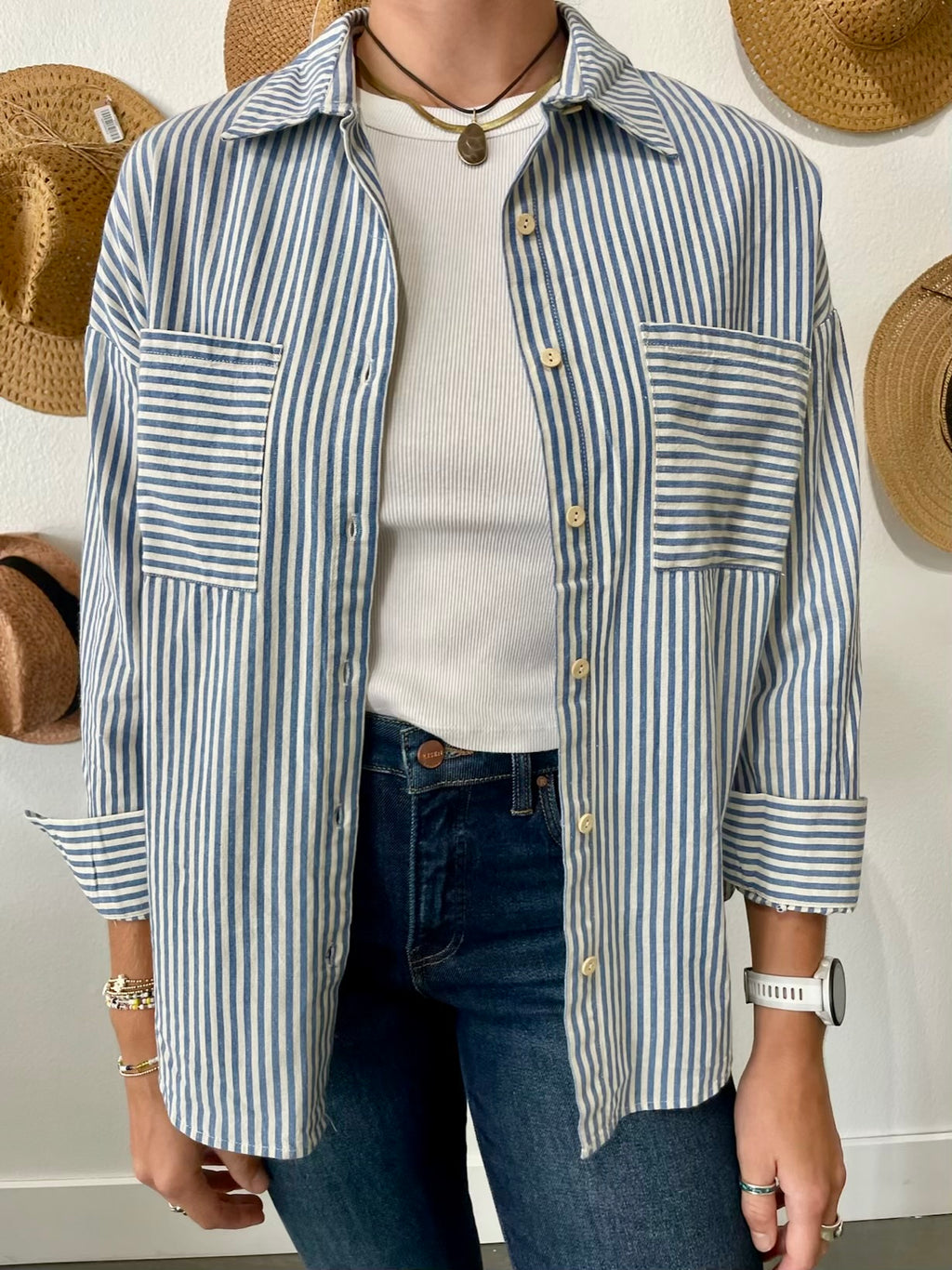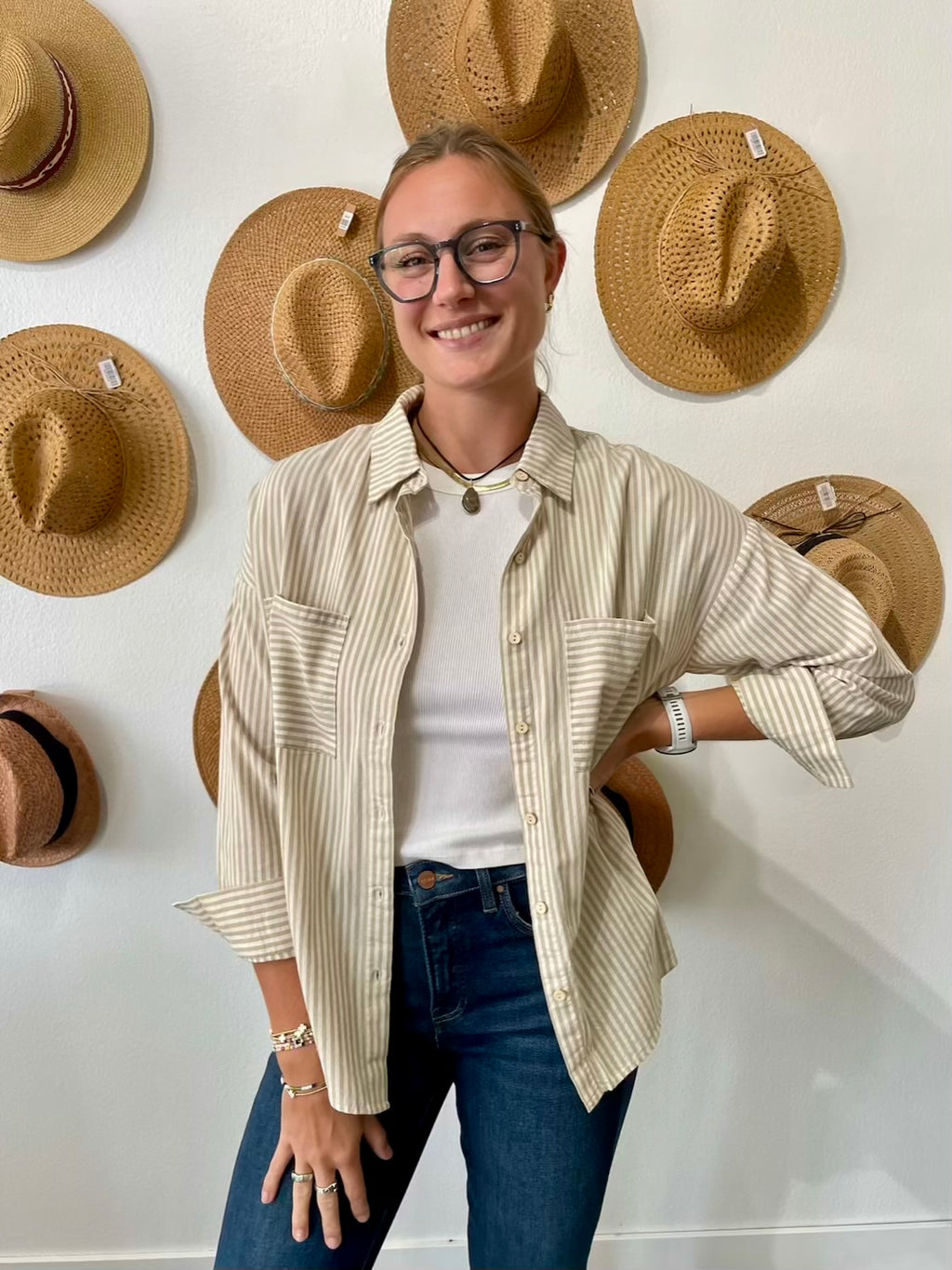 (Rhythm) Cove Stripe Long Sleeve Shirt - Aloe