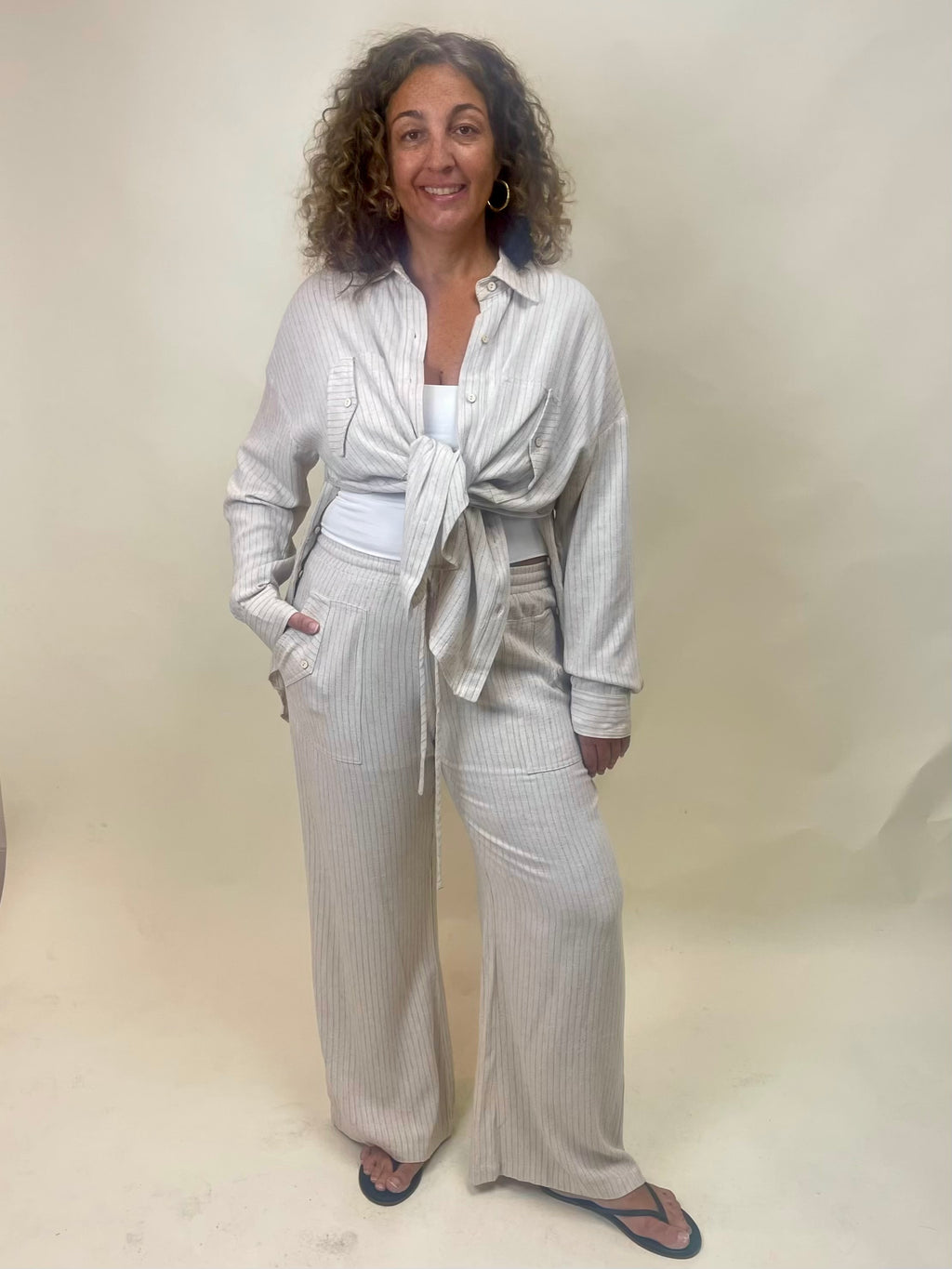 Issy Striped Wide Leg Pants - Taupe
