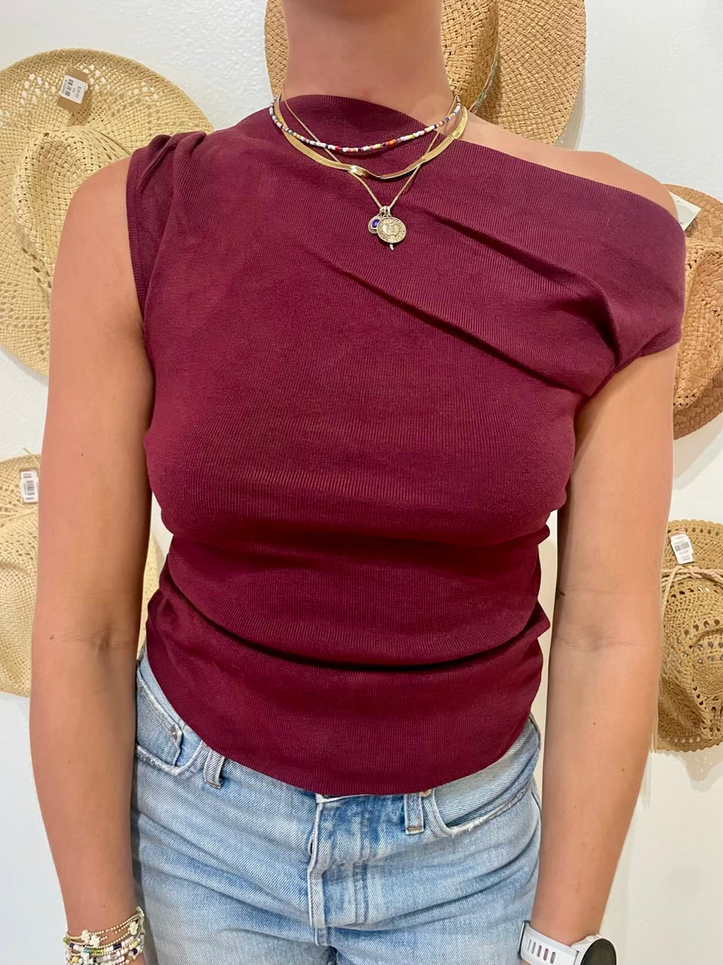 Anila Asymmetrical Sweater - Burgundy