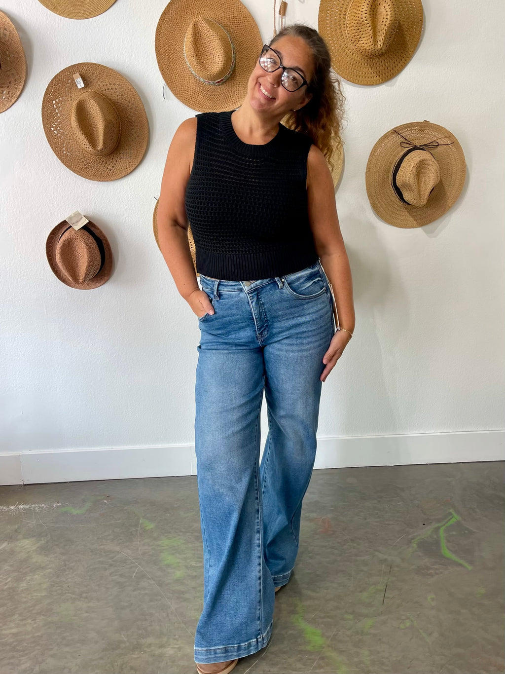 Final Touch Double Layer V-Neck Top - Dk Denim