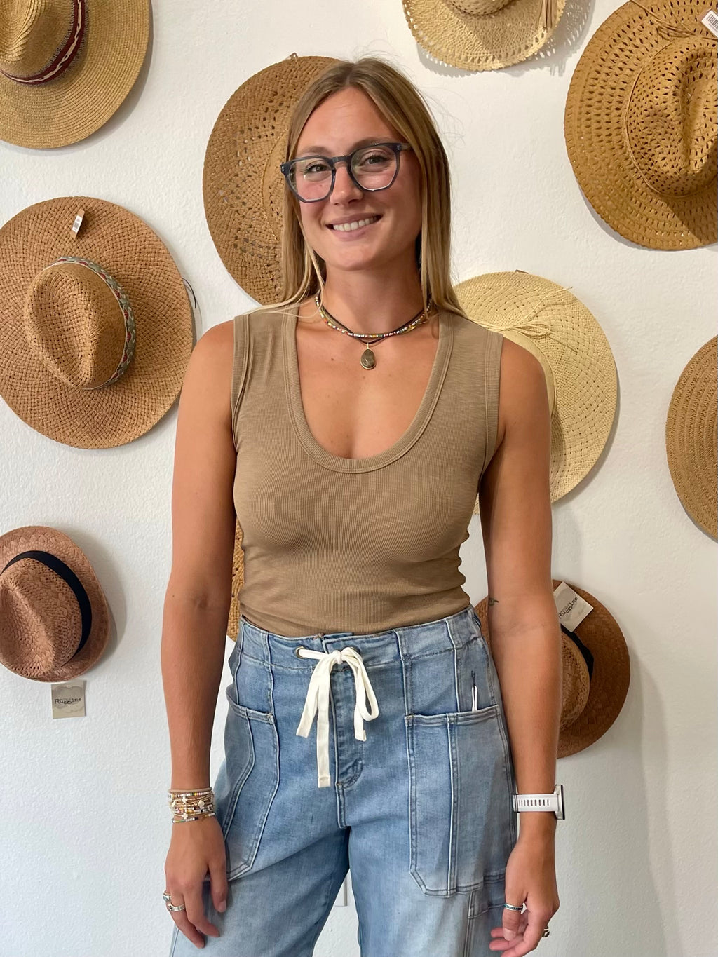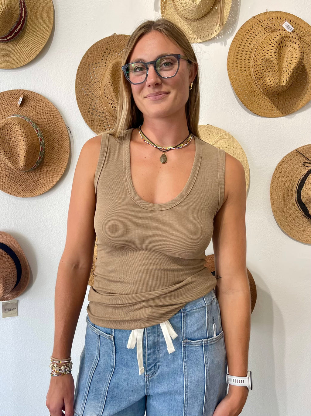 (Rhythm) Sunset Scoop Neck Knit Tank - Chocolate