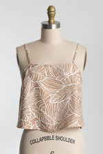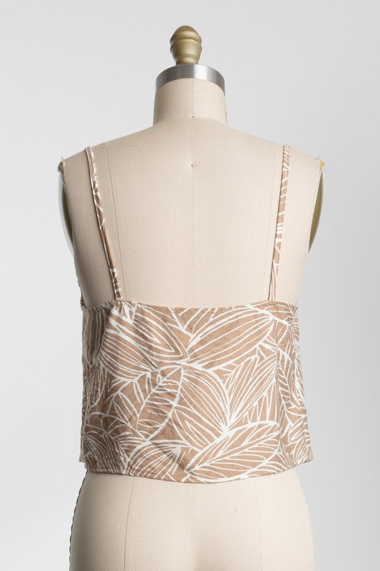Get ready to channel tropical vibes with our Sabela Cami Top! This taupe and ivory printed top features a low back and square neckline for a stylish look. The cropped length and loose fit make it perfect for pairing with our Sabela Wide Leg Pants. Bring some fun to your wardrobe with this quirky cami top!